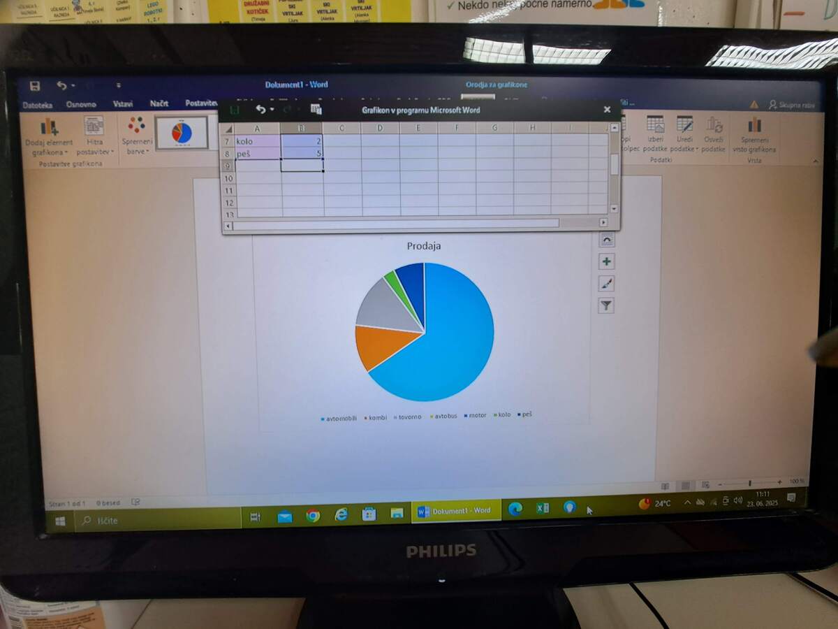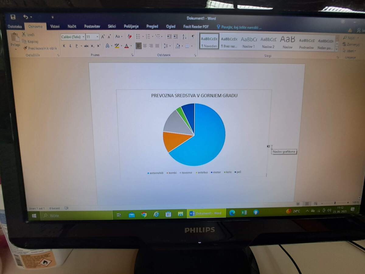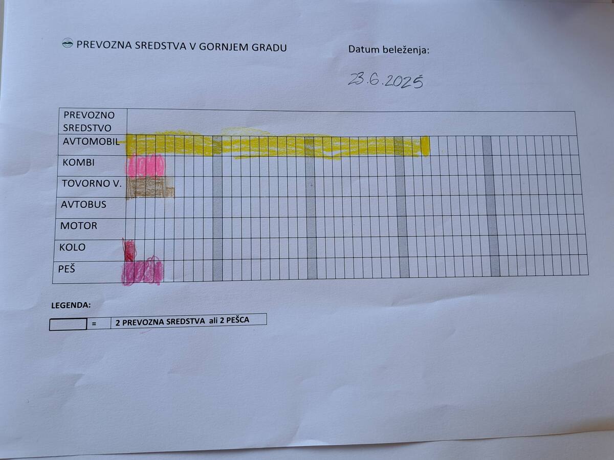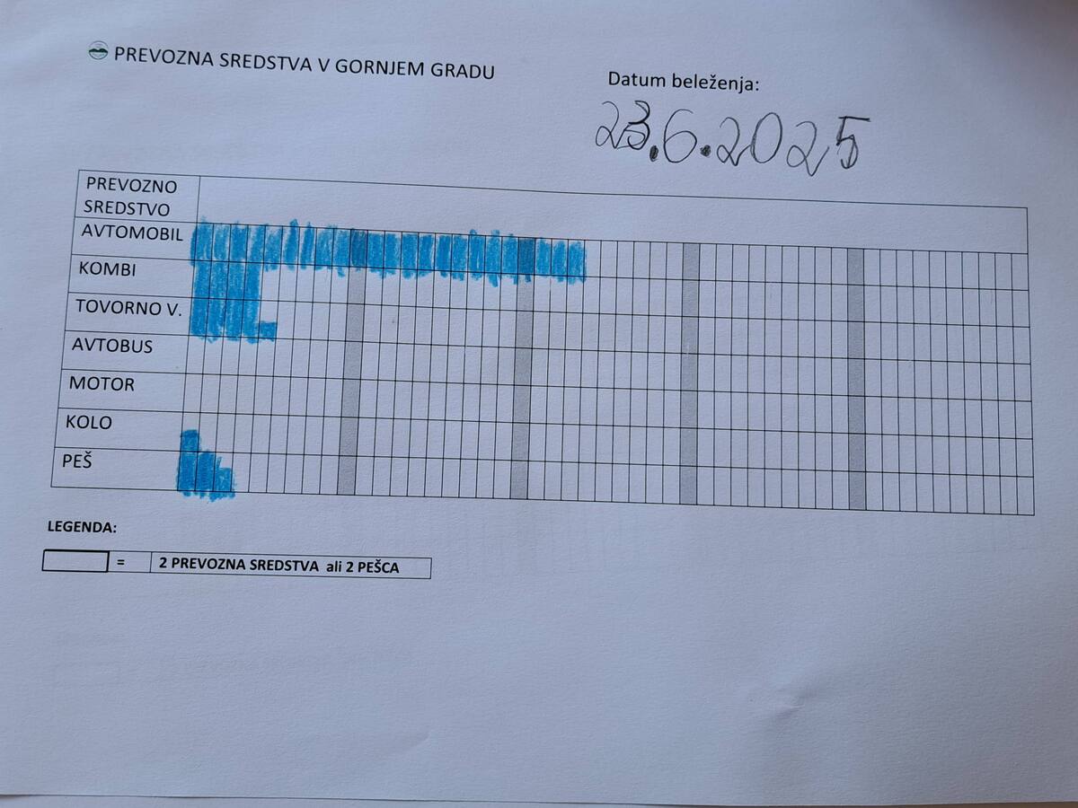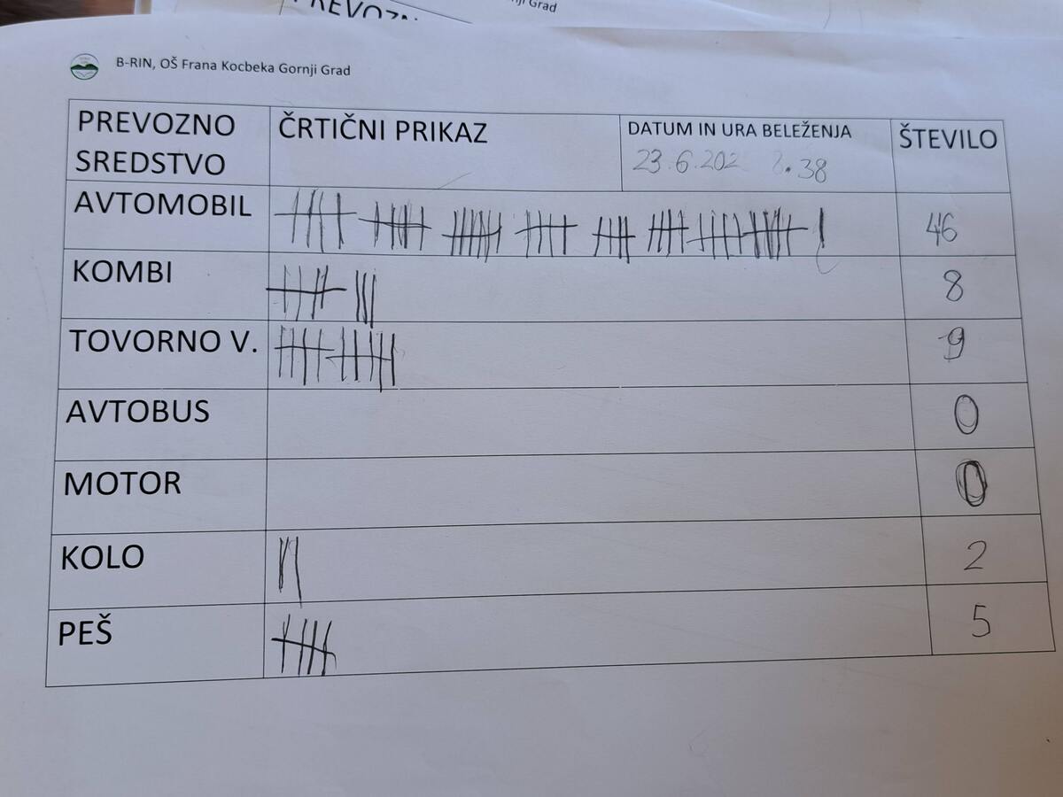 Tudi nas je zanimalo, koliko različnih prevoznih sredstev pelje skozi Gornji Grad ob določeni uri. Torej smo se lotili štetja prometa. Odpravili smo se pred šolo in pričeli s štetjem. Podatke smo prikazali na različnih prikazih in tudi v tabelah in grafikonih v Wordu. Učenci so ob aktivnem delu uživali in se veliko novega naučili.