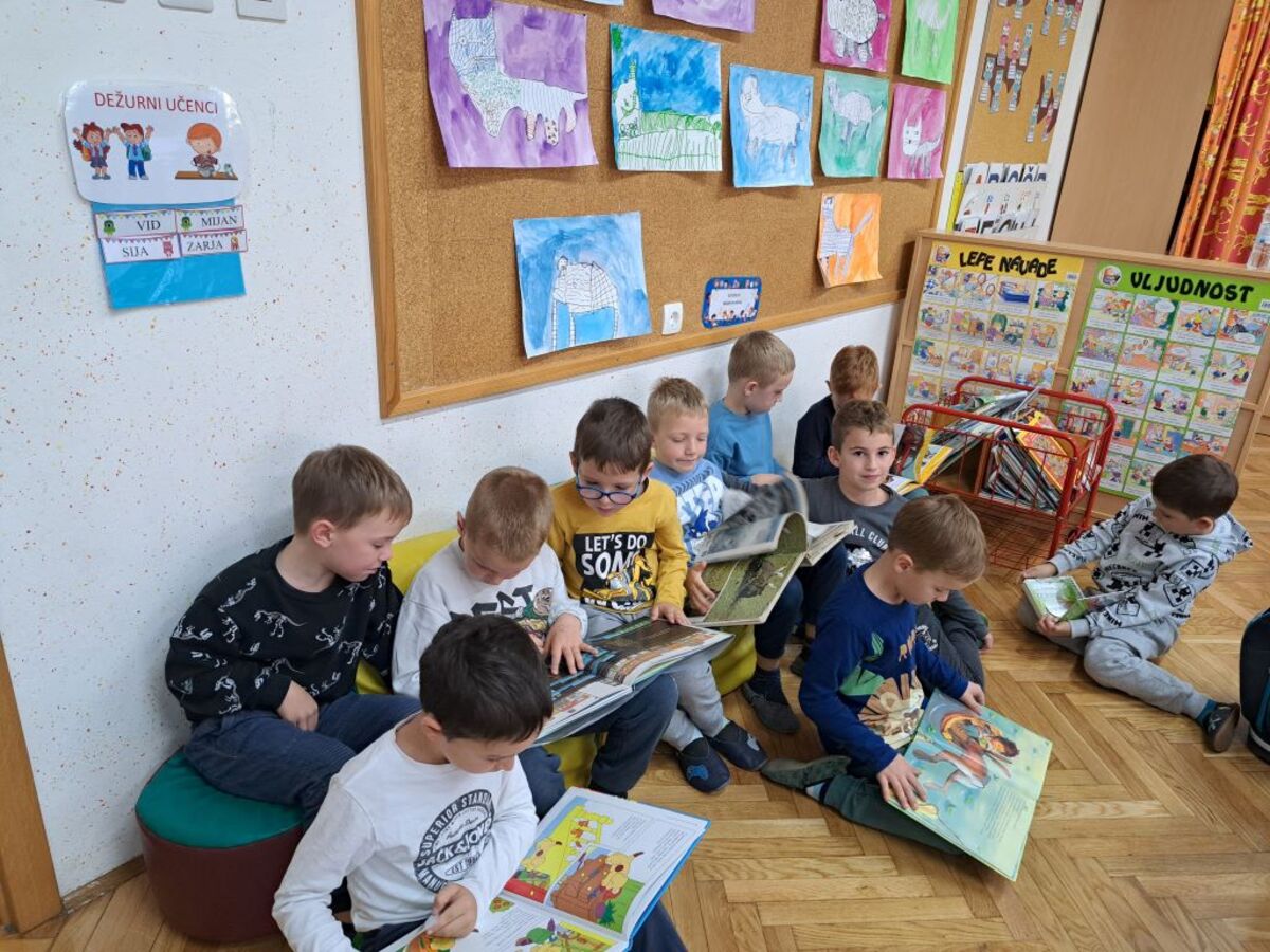 V sredo, 8. 10. 2025, smo ob Tednu otroka ter začetku branja za Bralno značko na naši šoli izvedli bralni kulturni dan, ki je bil namenjen individualnemu in skupinskemu branju, pomenu branja, promociji branja in Bralne značke ... Učenci so tako spoznavali pomen branja za kratek čas in osebno rast, sami so brali knjige, ki so jih prinesli s seboj, in individualno vzpostavili odnos do umetnostnih besedil. Prebrane odlomke so v obliki pogovora tudi predstavili drug drugemu. Učenci razredne stopnje so ob tej priložnosti obiskali še splošno knjižnico v kraju.