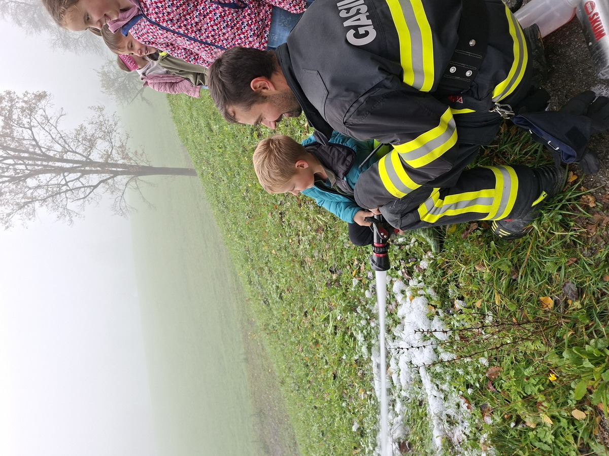Po uspešno izvedeni vaji so nam gasilci in gasilka PGD Nova Štifta pripravili zanimivo in poučno predstavitev svojega dela. Razkazali so gasilske tovornjake, prikazali gašenje z vodo in gasilnim aparatom, učenci pa so se lahko tudi sami preizkusili v gašenju.